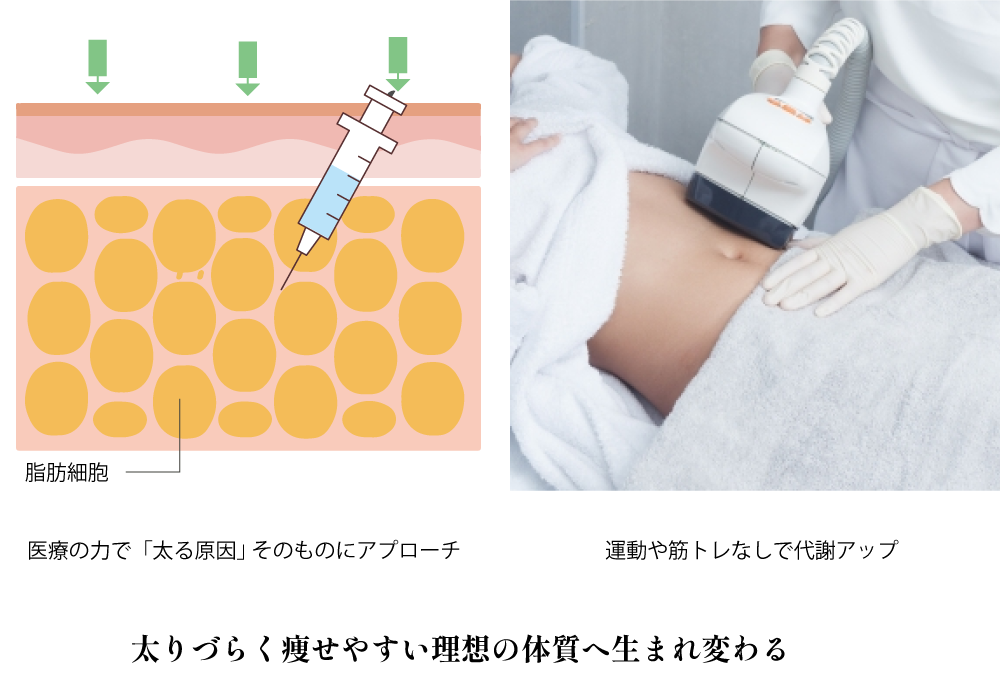 太る原因そのものである脂肪細胞へのアプローチは、医療ダイエットでしか実現できません。